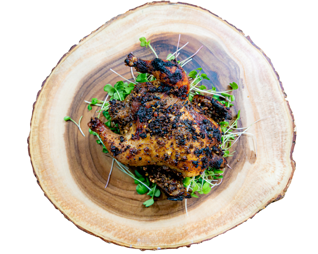 Pasture-raised LaBelle Patrimoine chicken, organic garnet sweet potato mash, and steamed green beans