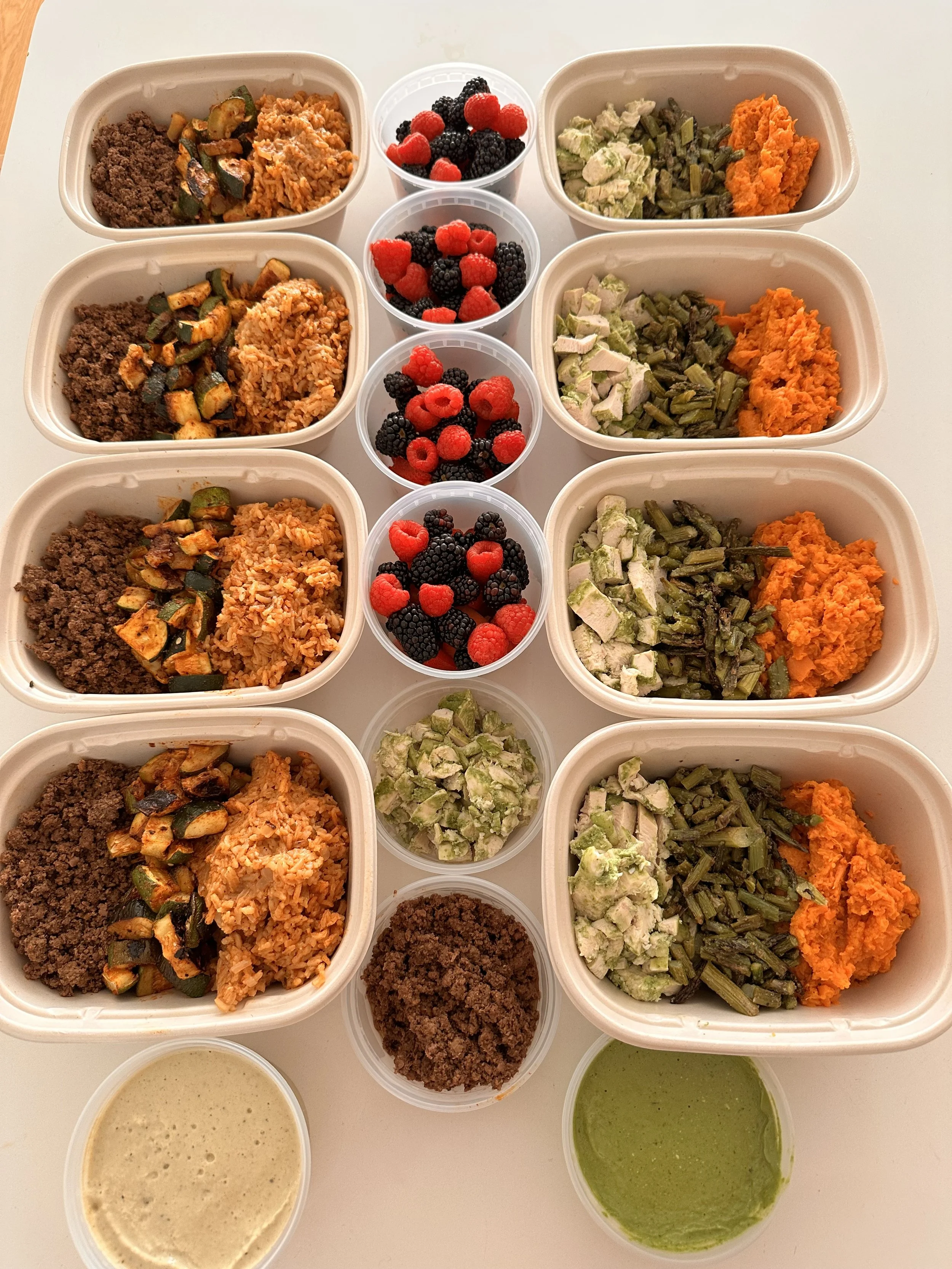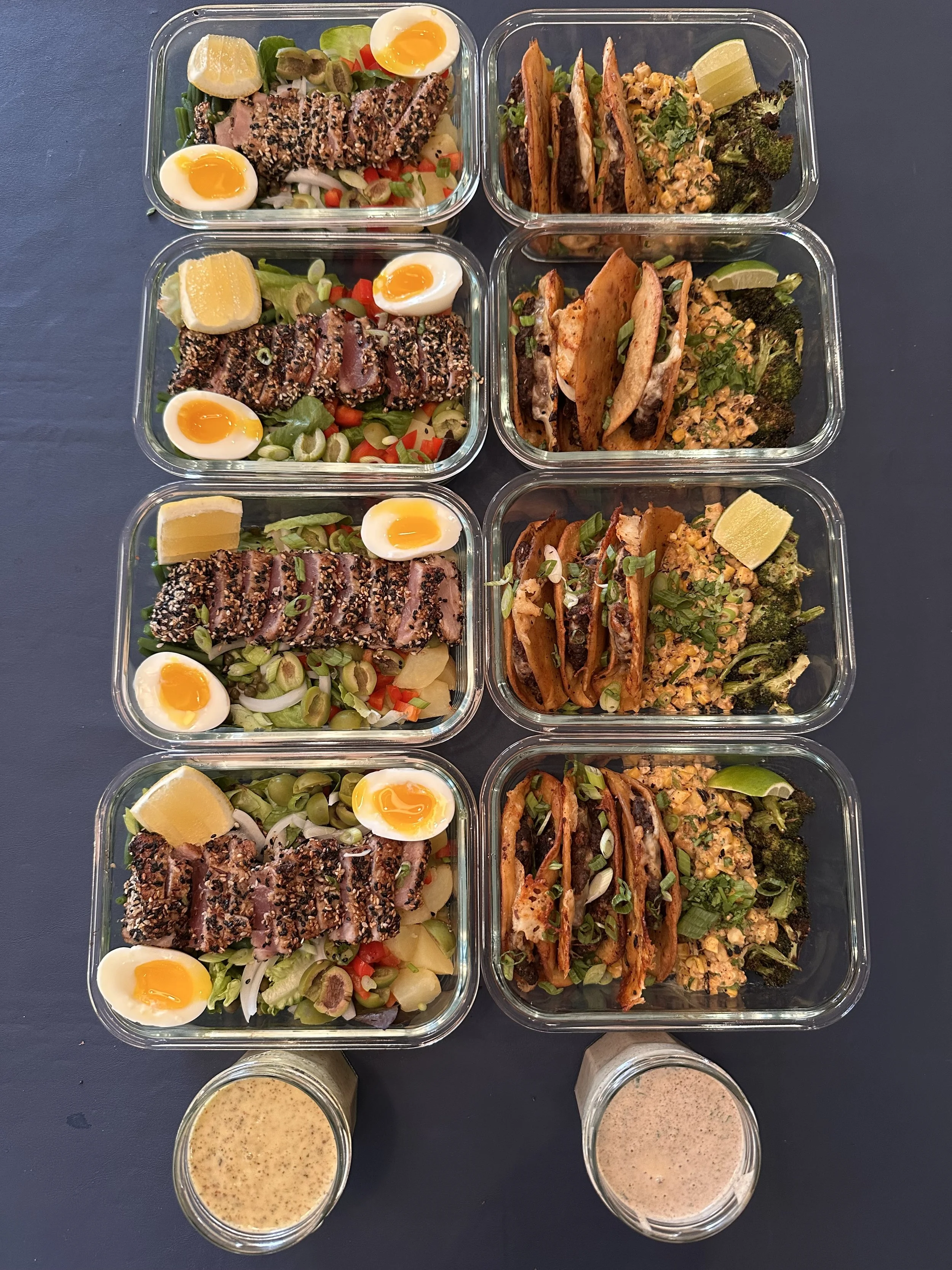 Weekly menus are thoughtfully designed around your preferences, goals, and dietary needs, with seasonal, globally inspired dishes. We manage grocery planning, prepare meals fresh in your home or for delivery, portion everything family-style for easy reheating, and leave your kitchen clean, organized, and reset.