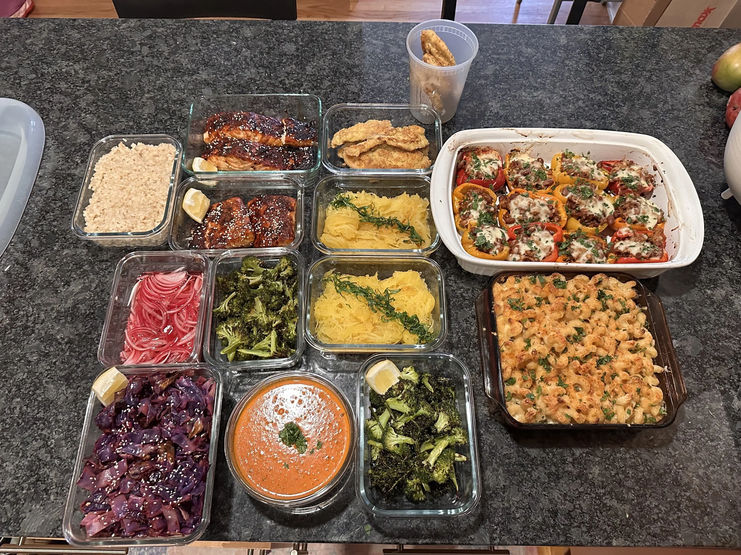 Multiple entrées prepared in generous, flexible portions for easy reheating and mixing throughout the week.Kitchen Reset & Organization